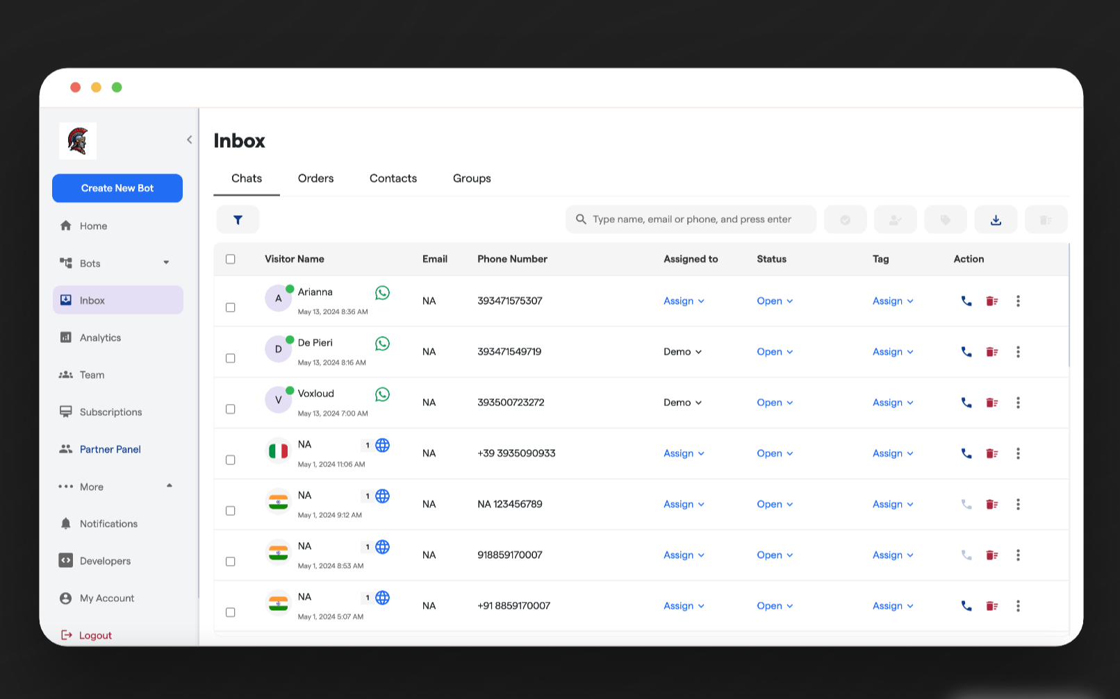 Gestisci insieme al tuo team umano, tutti i messaggi della live chat, i WhatsApp, i messaggi su Facebook, Instagram e Telegram, in un unico posto
